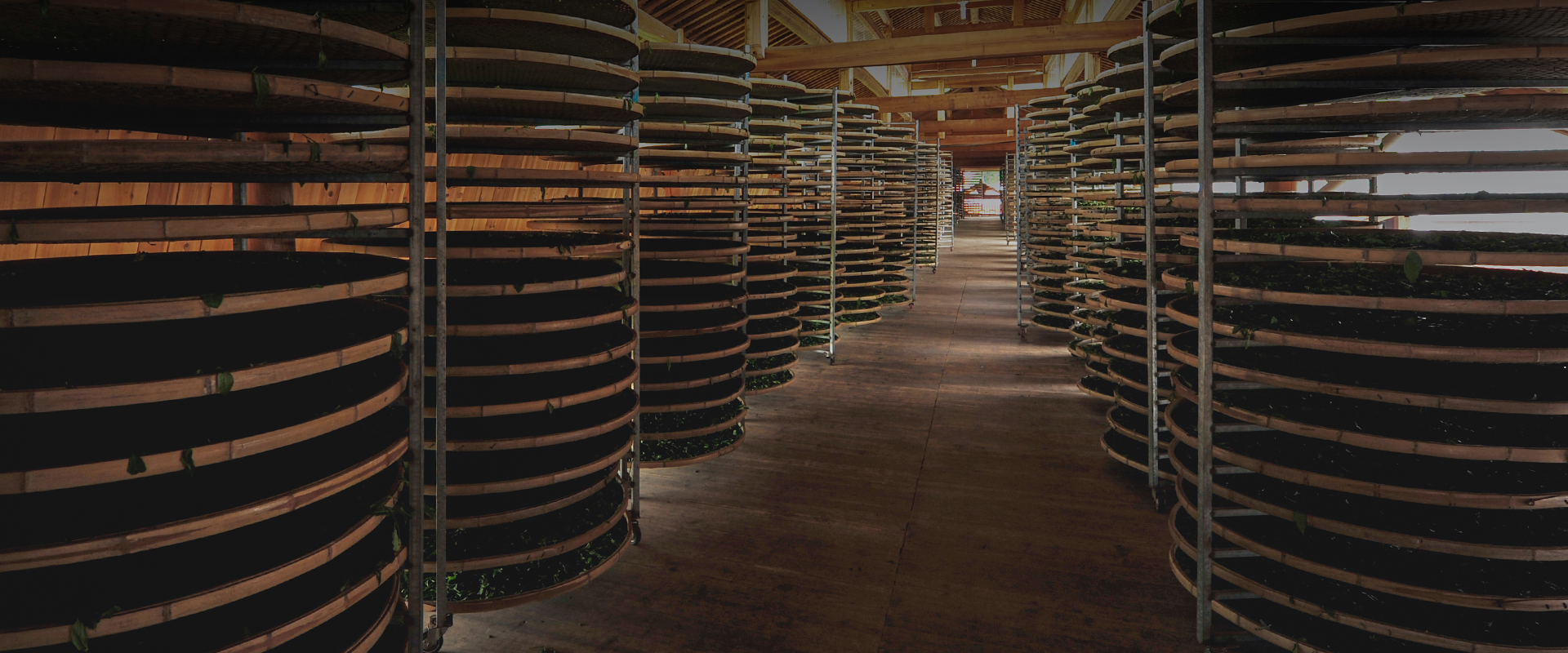 同时,茶叶不会因为过渡日晒失水过快,而造成茶叶青味太重,可以在廊桥里乘凉,让水分慢慢走掉,让青味慢慢消失,让香气慢慢形成,在早上或到傍晚,太阳温和的时候,再出去接受温柔的日光浴,就这样萎凋到极致。